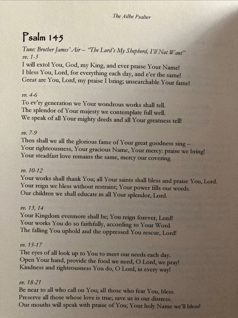 And then again in the “Ailbe Psalter.” Here is T. M.’s translation of Psalm 145.